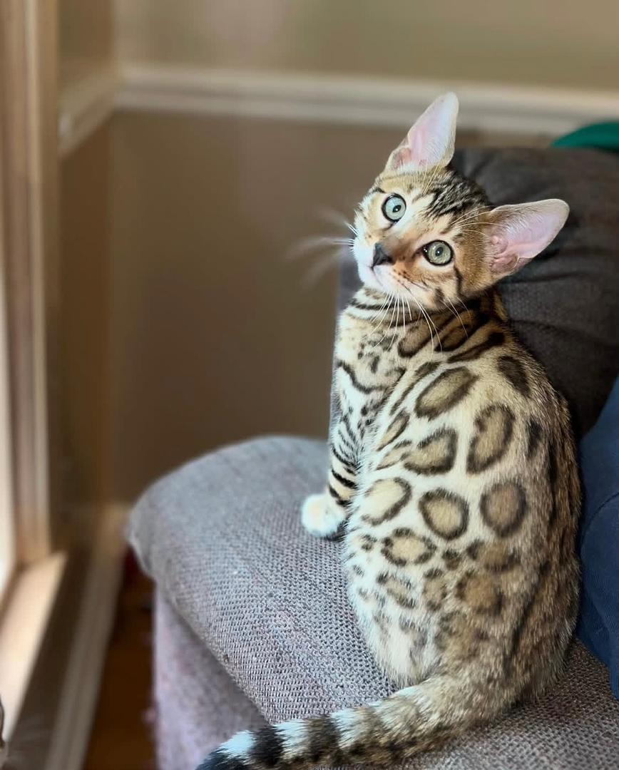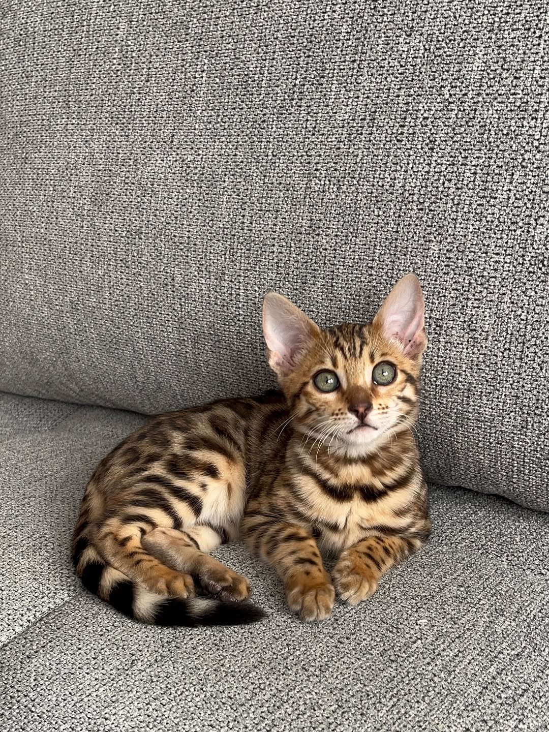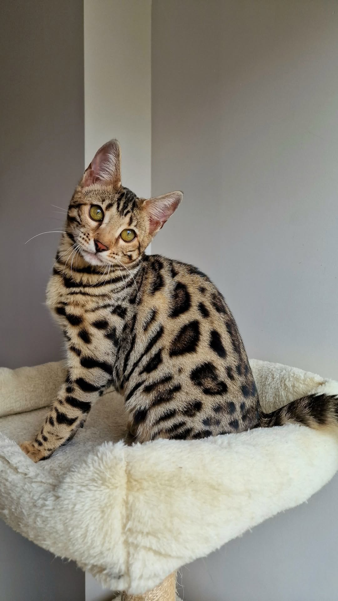 Breed: Bengal Kitten. Litter Box Trained: Yes. Up To date on shots: Yes. WHAT’S INCLUDED Passport, Microchip, Documents, Vet Record, Pedigree, Toys, Sample Food & 1Year health Guarantee. Shipping Available: Yes.